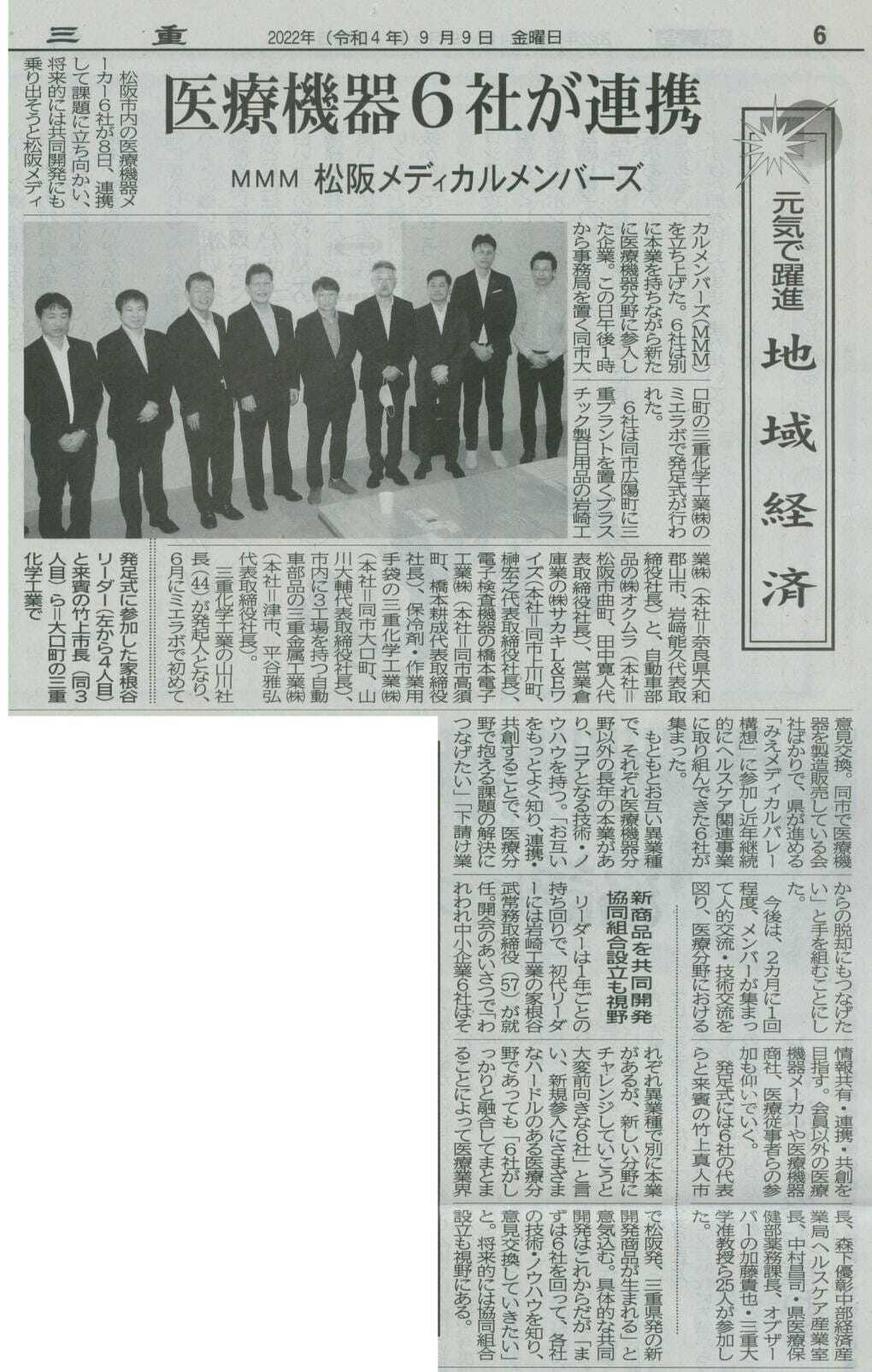 『松阪メディカルメンバーズ(MMM)』発足式 メディア掲載のお知らせ